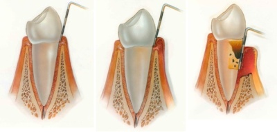 - Er pockets zijn ontstaan d.w.z dat de ruimte rondom tussen tandvlees en tand verdiept is, dieper dan 3mm